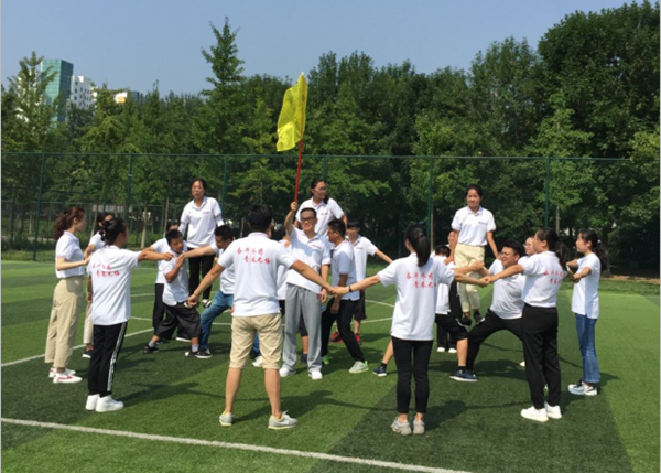 拓展磨砺,培育奋斗品质。在体育场开展的体验式拓展训练为期一天,通过破冰之旅、团队建立、汉诺塔、盗梦空间、盲人方阵、达芬奇密码等项目,新员工增进了沟通与交流,学会了配合和协作。炎炎夏日,尽管大家汗流浃背,甚至手出血、脚磨破,但仍然咬牙坚持不放弃,充分诠释着印在T恤上的“奋斗齐药,青春无悔”。